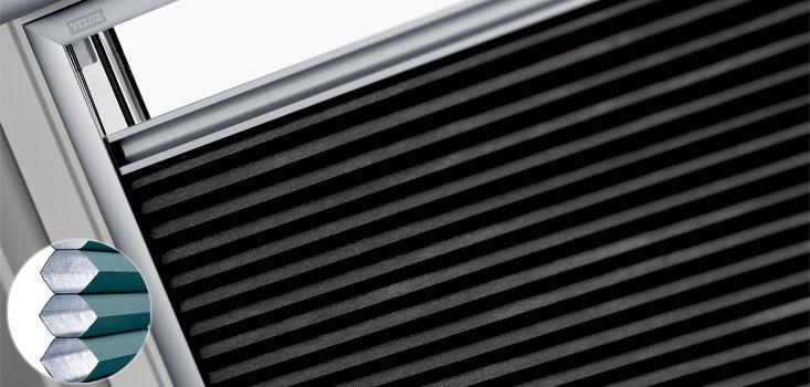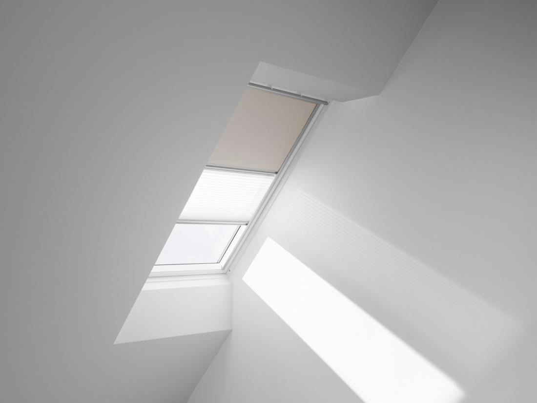 מוצר ייחודי לחלונות גג תוצרת VELUX. וילון המשלב בתוכו גם וילון חושך וגם וילון הצללה במוצר אחד
