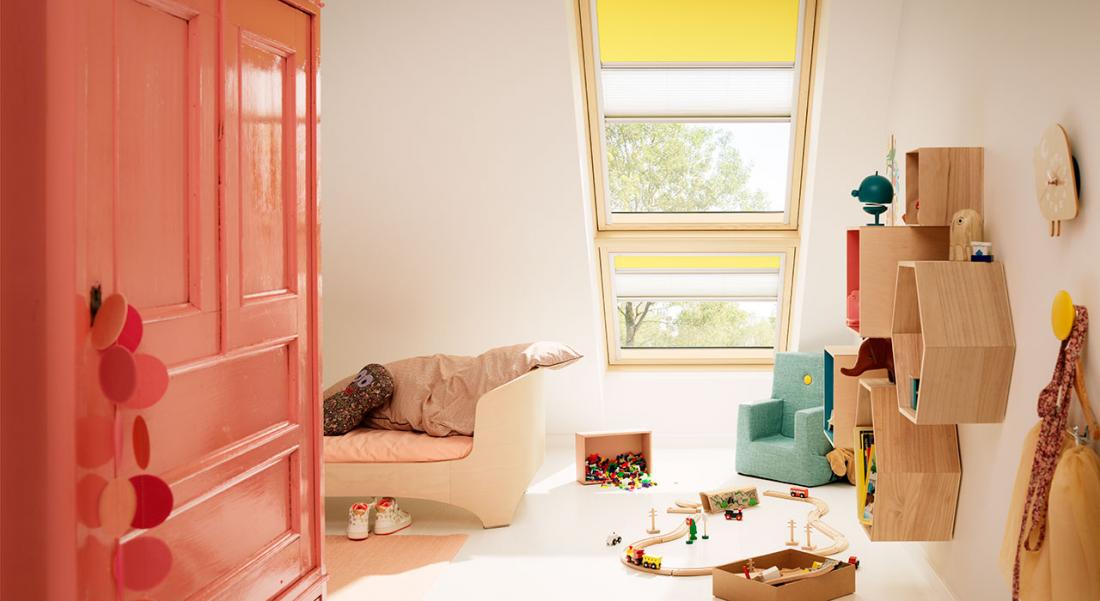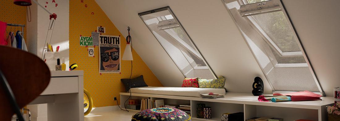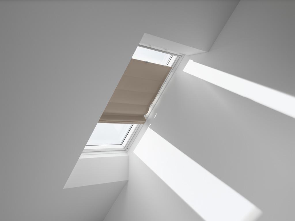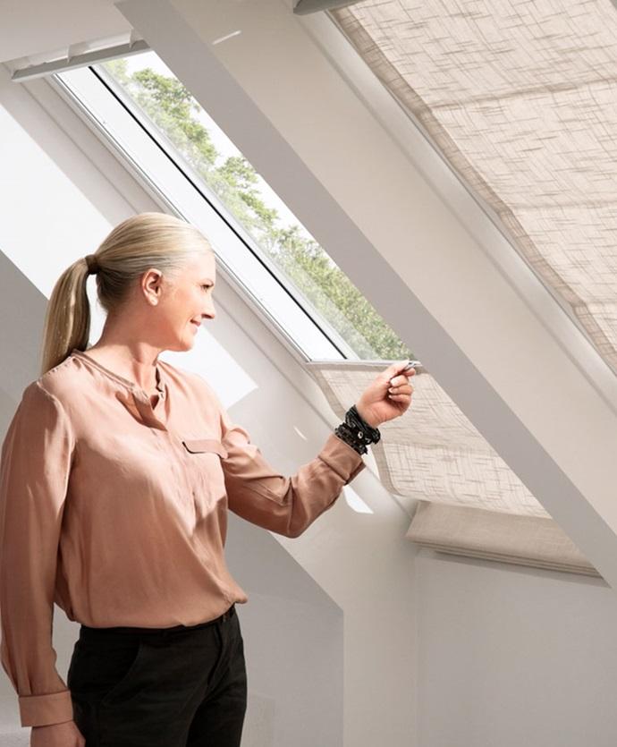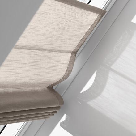 עכשיו אפשר ליהנות מהמראה הרך והמעוצב של וילונות לחלונות גג. חברת VELUX מחדשת עם ליין חדש ויוקרתי לוילונות בסגנון רומאי. 20 דגמים שונים, צבעים רכים ומעוצבים, במגוון רחב של בדים, הדפסים וטקסטורות מיוחדות. וילונות חדשים בסגנון רומאי מאפשרים לעצב את הקיפולים לפי התאמה אישית.  ניתן לאפשר לאור להיכנס במלואו או לחסום את רובו.הוילון נשלף לניקוי וניתן לבצע החלפת בדים בקלות.