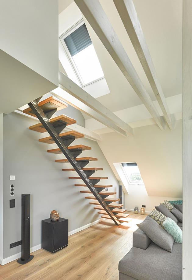 גגות משופעים הופכים ממקום חשוך וחם לאזור מאוורר ומואר באור טבעי.