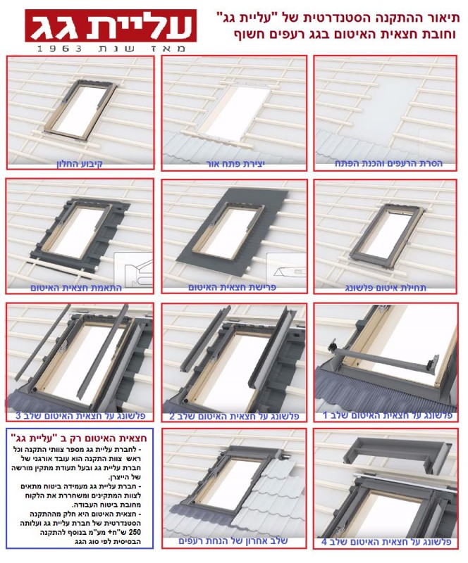 התקנה: התקנה ייחודית לעליית גג היא חליפת האיטום מסביב לחלונות.
